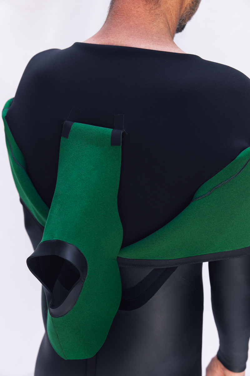Designed with an inner construction that covers the back like a no-zip suit, while the back zip opening ensures a wide entry for effortless wear.